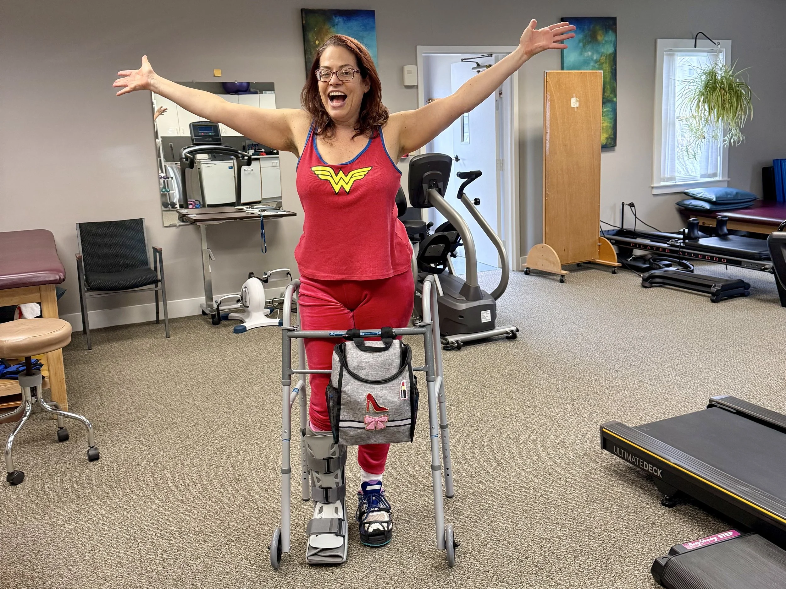 I have been humbled literally learning to walk again. I broke my leg over 5 months ago, and despite 3 months of PT twice a week, I can not do the things I always took for granted. I can not do a calf raise on my right leg. I can not walk a mile. It has been frightening to feel so unrecognizable from the energetic, healthy person I have always been.
